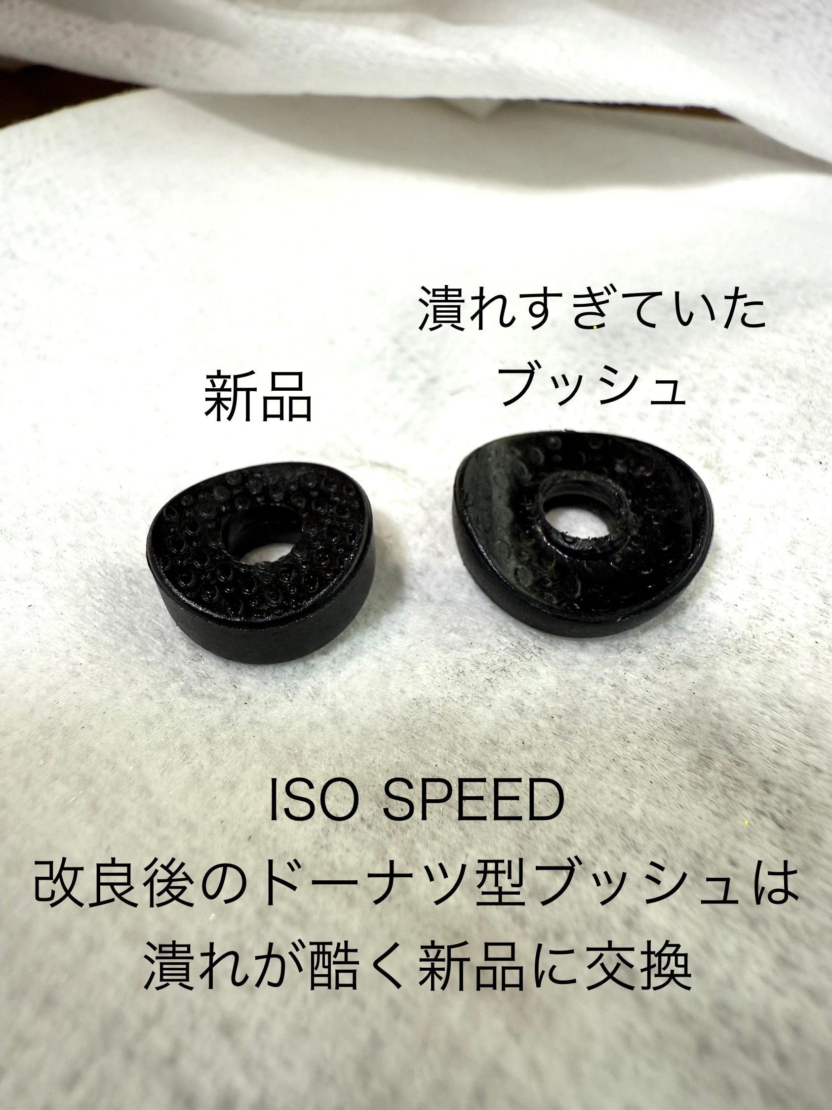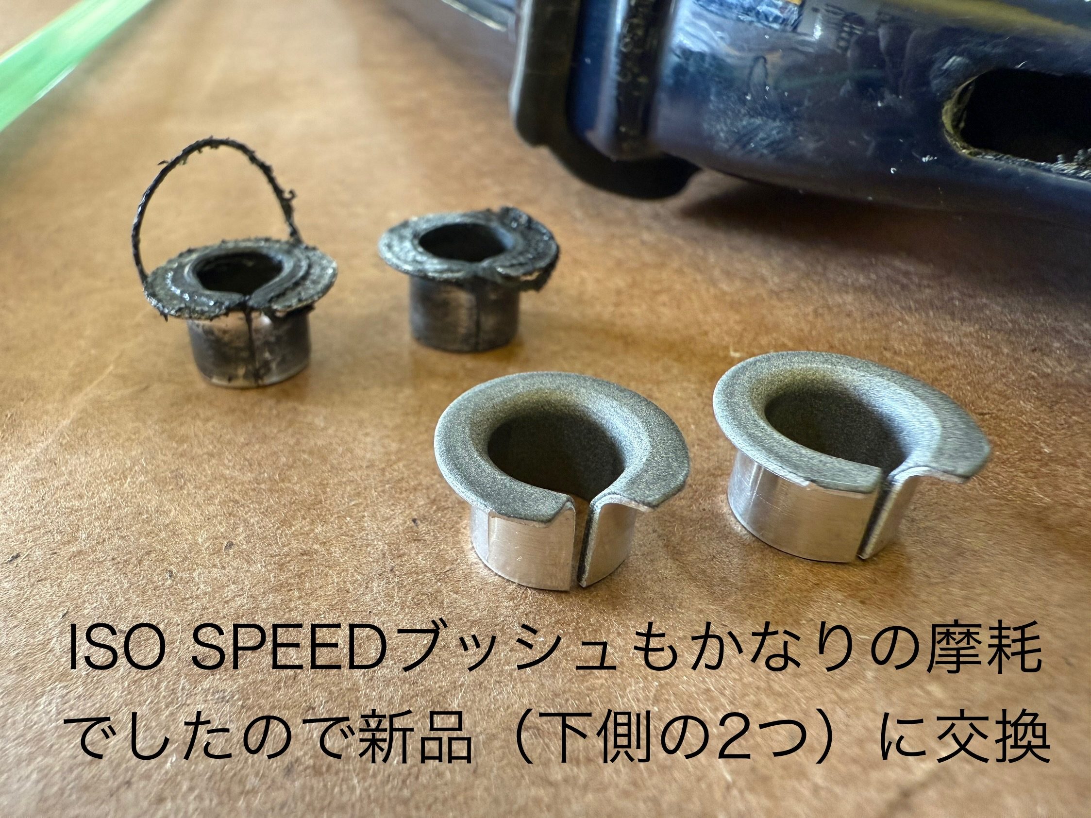 まずは使用するにつれ痩せてくる、ISO SPEEDブッシングの打ち替えです。