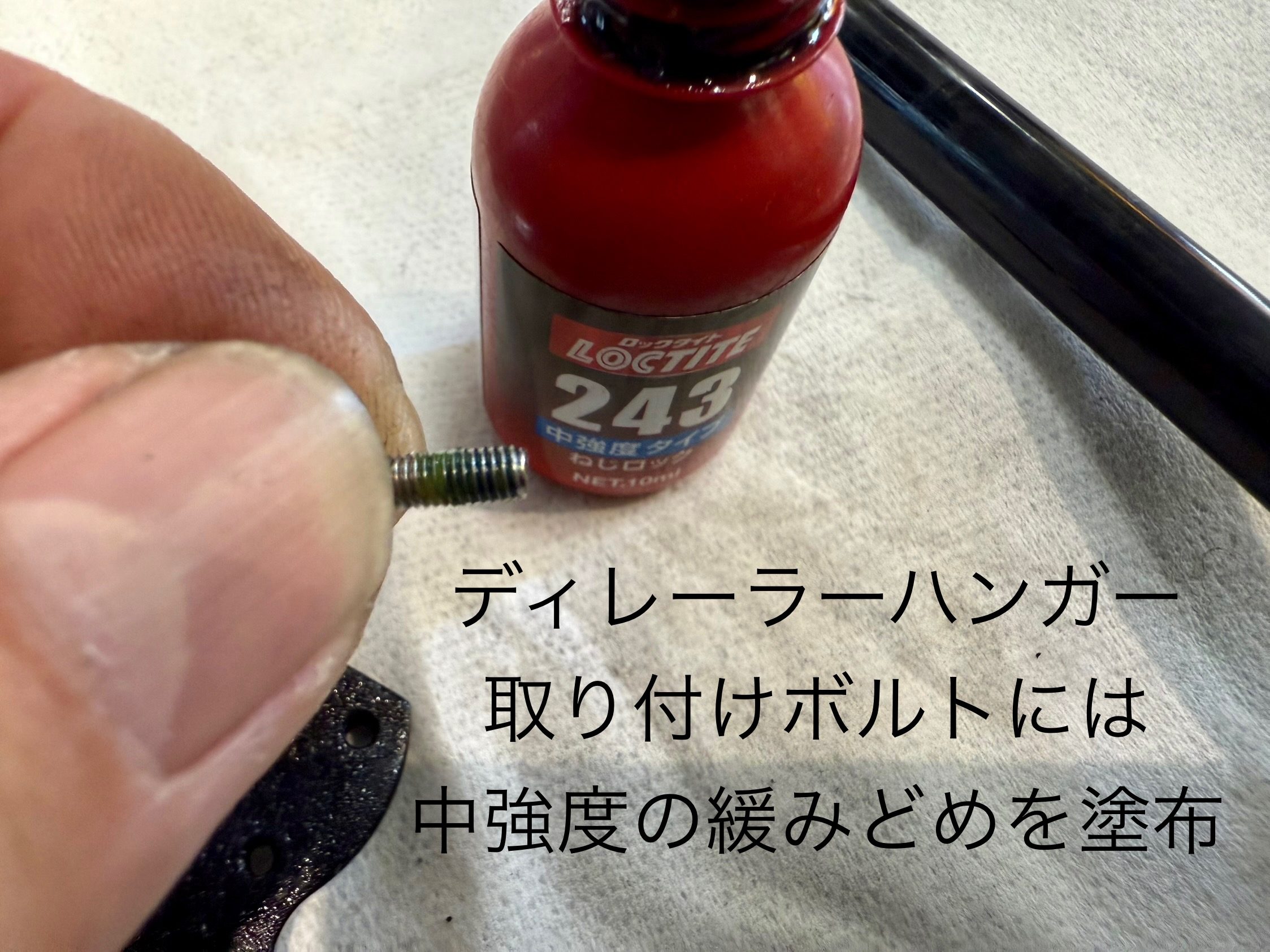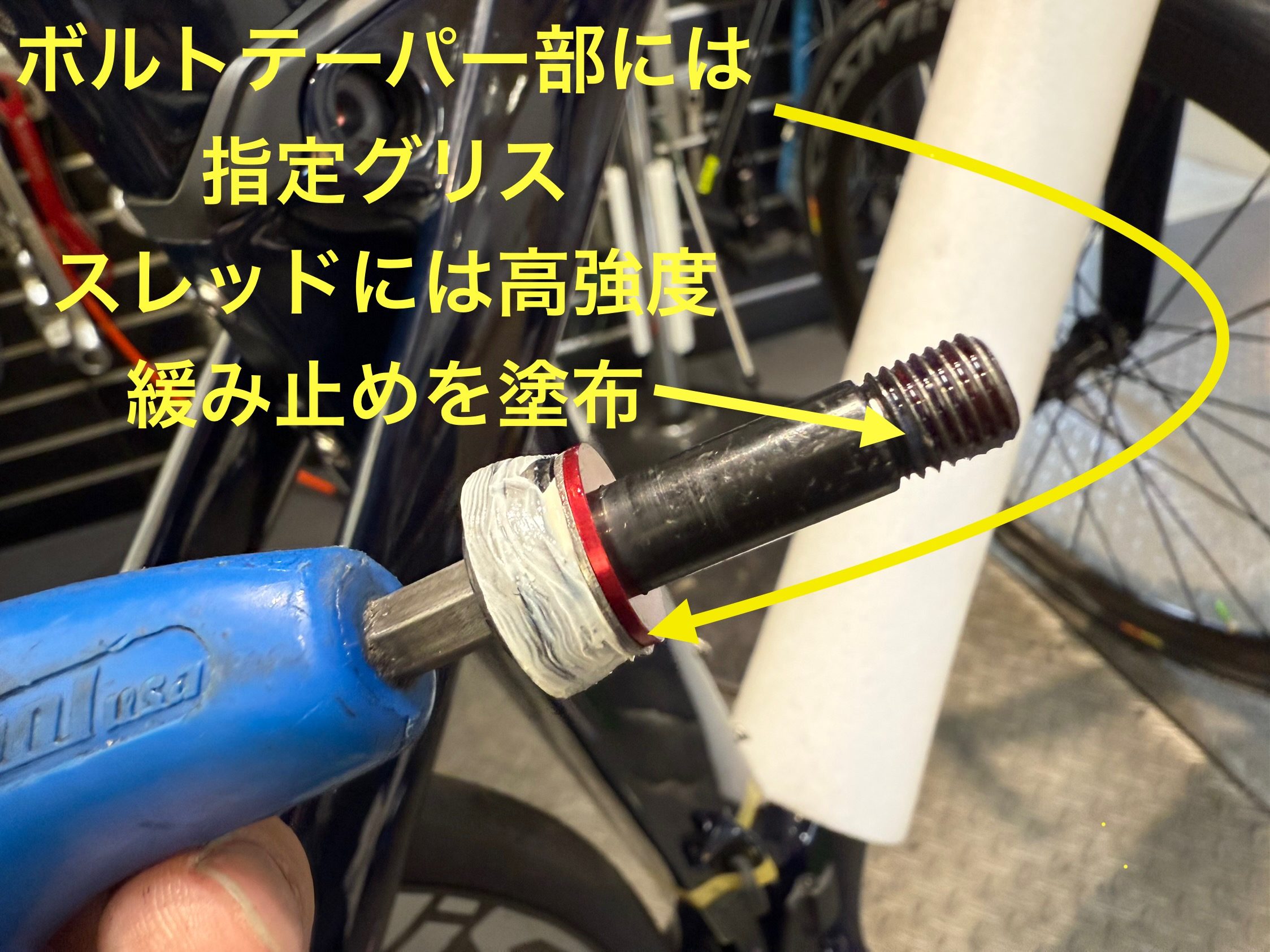 指示箇所にグリス、ねじ山には簡単には外せない高強度タイプの緩み止めを塗布