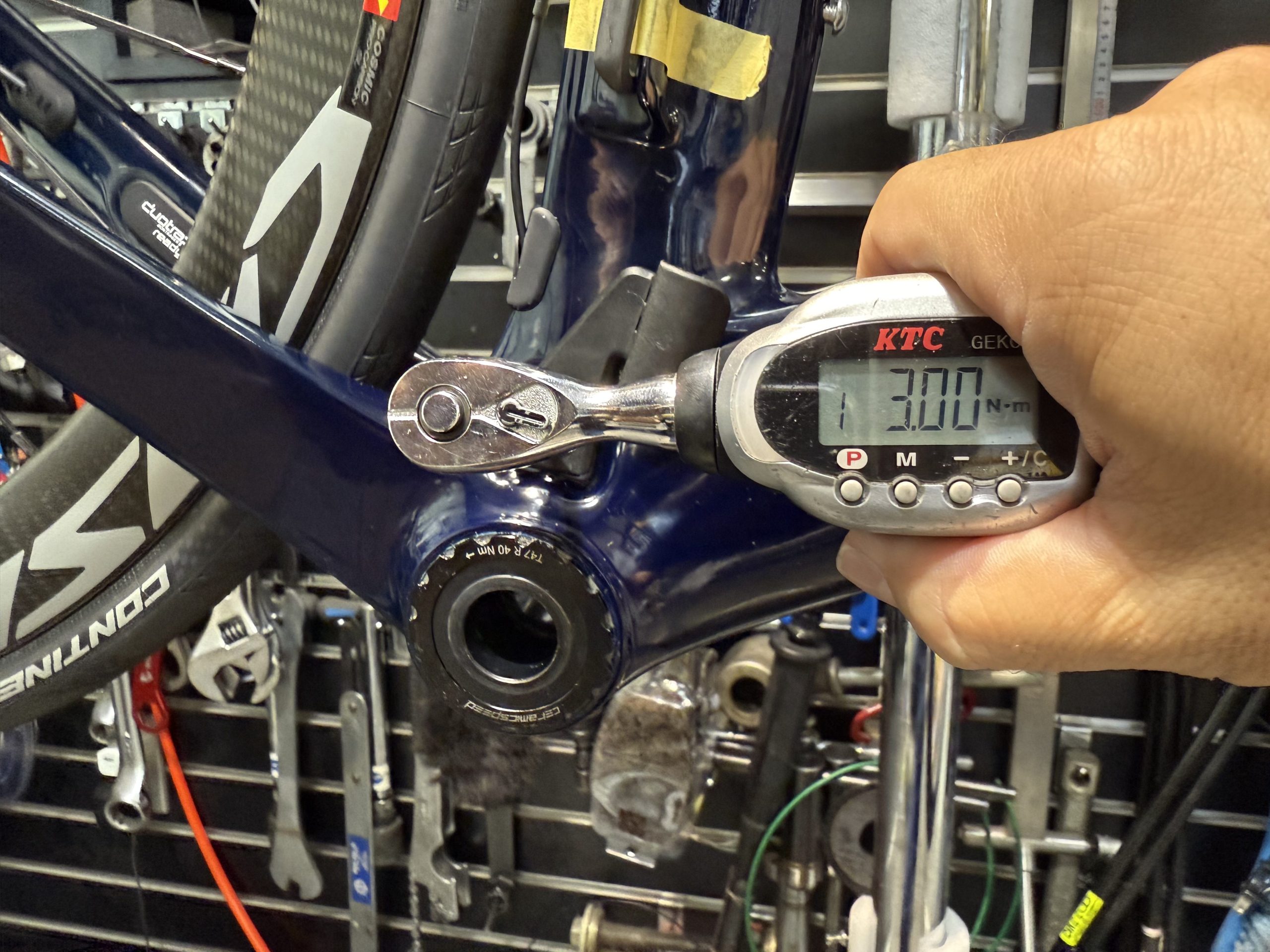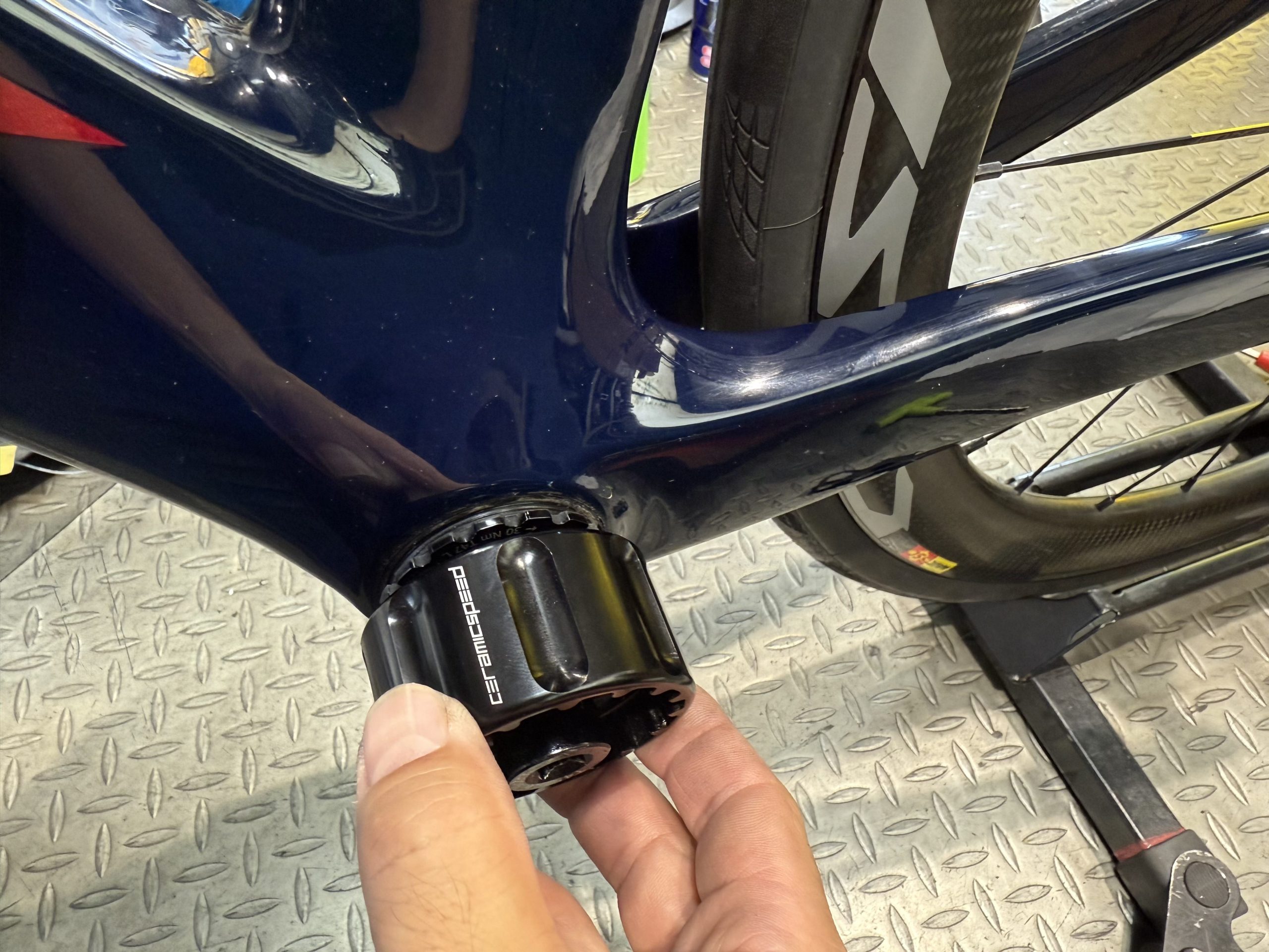 フレーム内部の確認でBBを取り外します。セラミックスピード純正工具を使います。