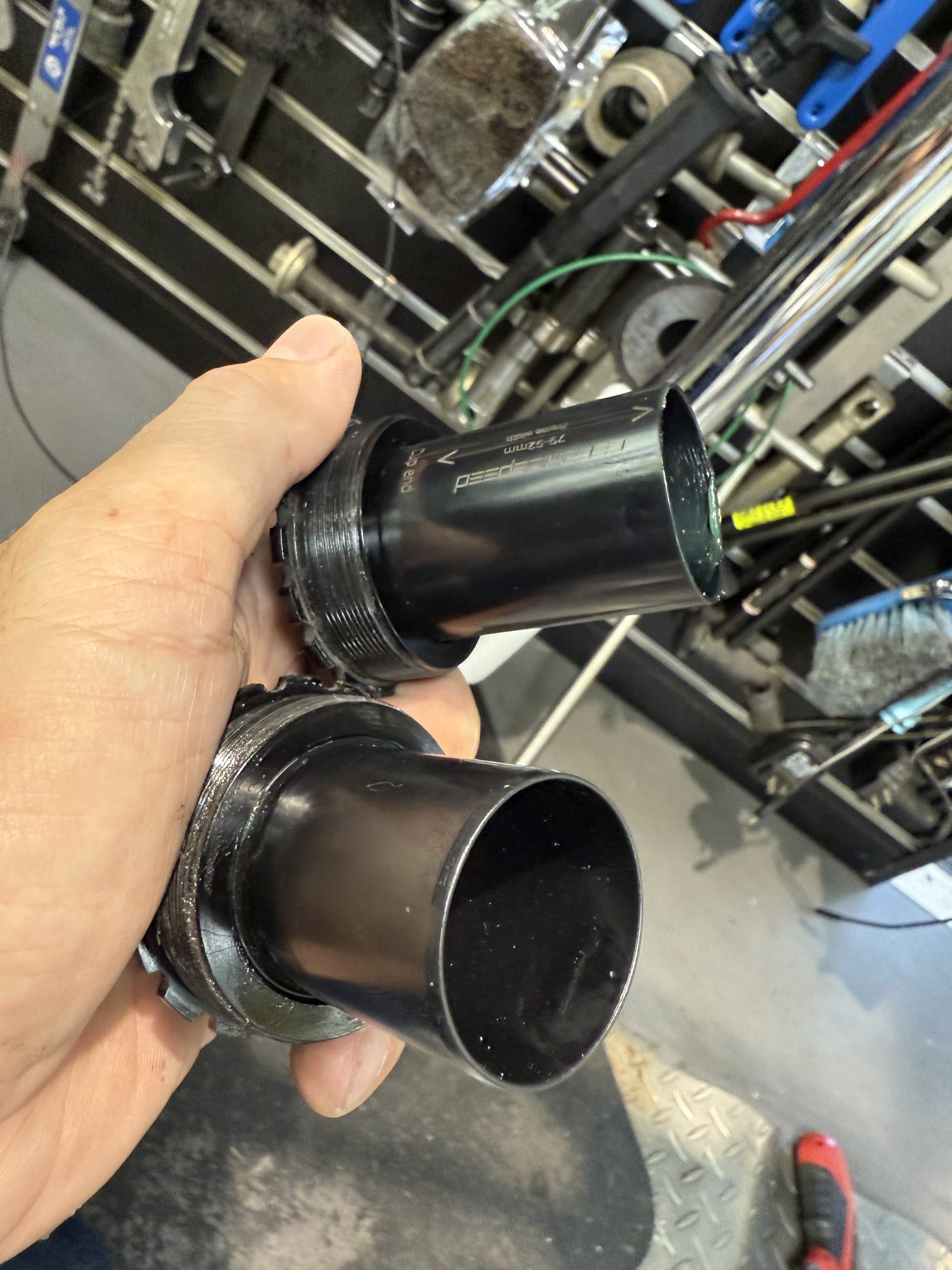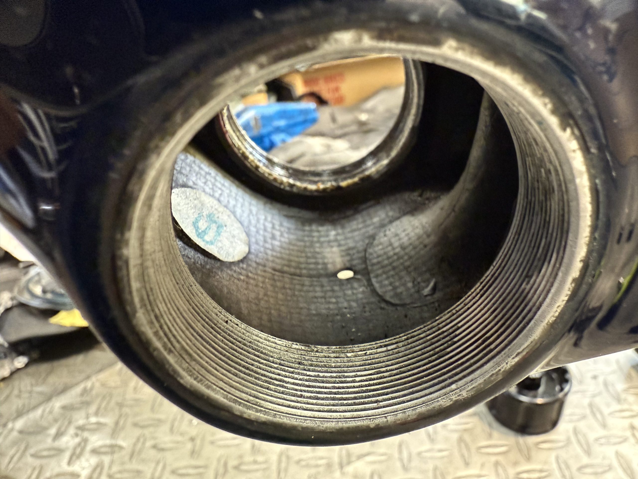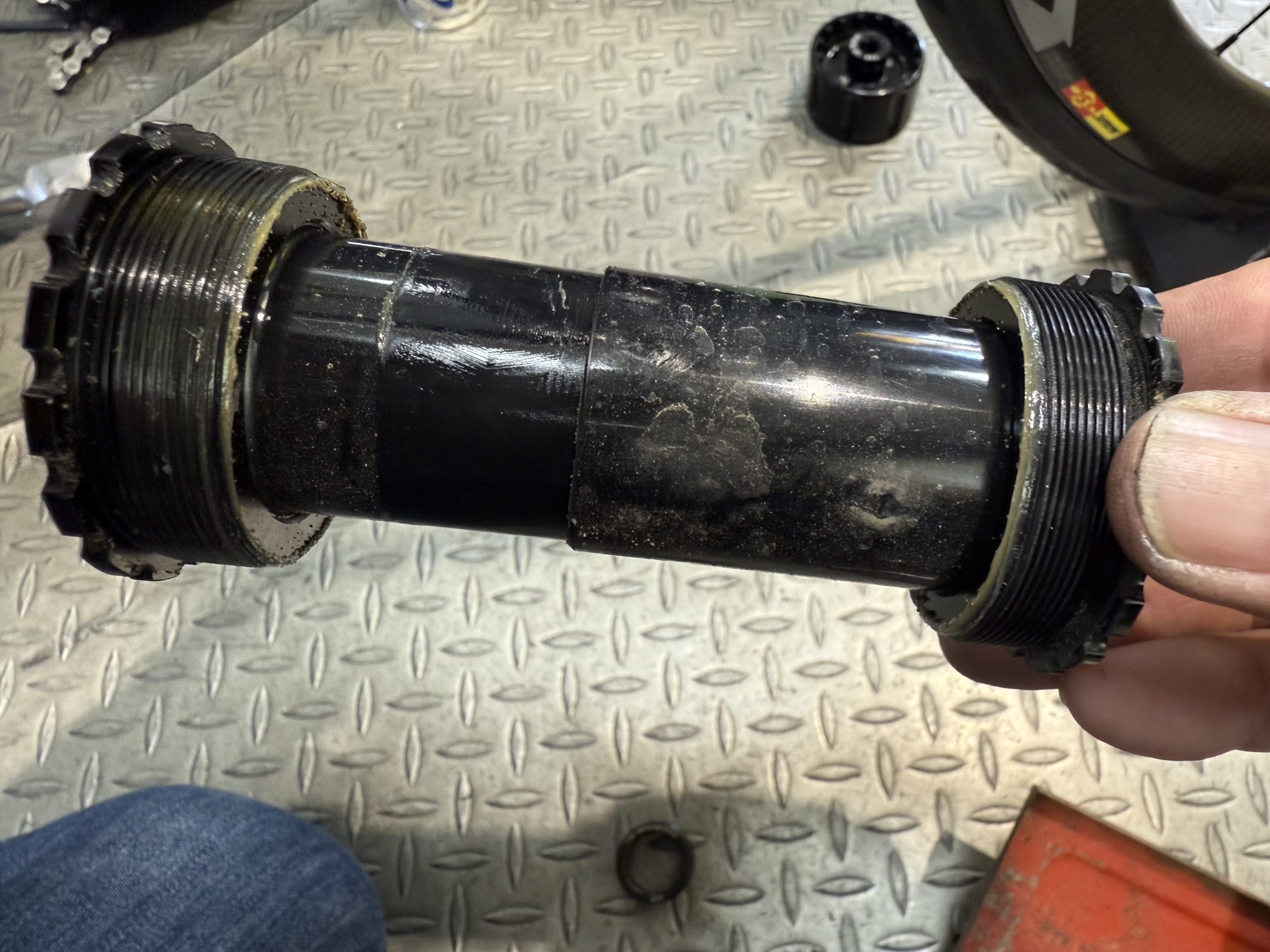 BBを取り外した画像です。少しですが汚れていましたので、この後、清掃し新しいグリスで水の侵入経路を塞ぎました。