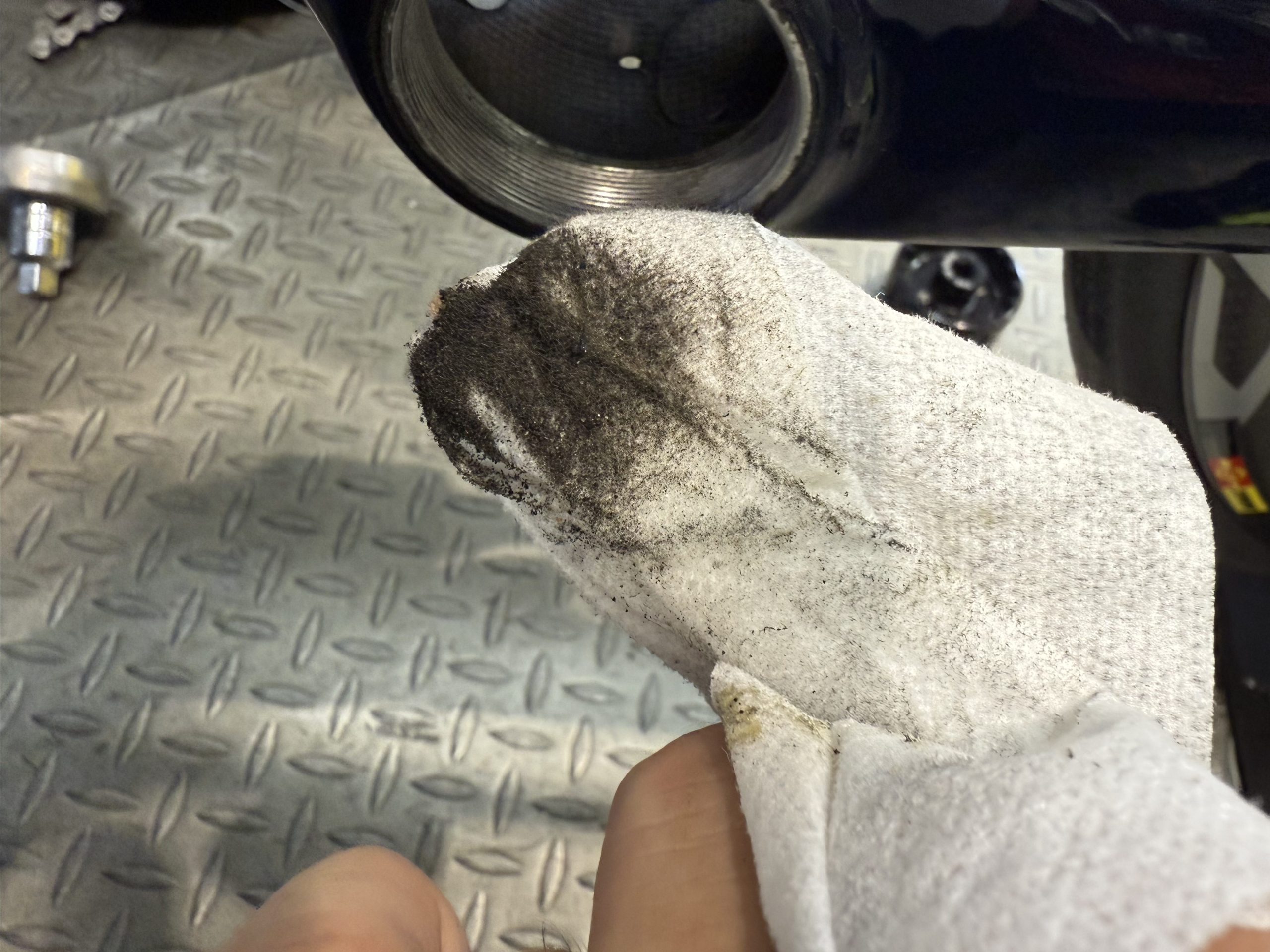 フレーム内に砂が溜まっていましたので、綺麗に清掃を行いました。ねじ山はパーツクリーナーを使い汚れを落とします。