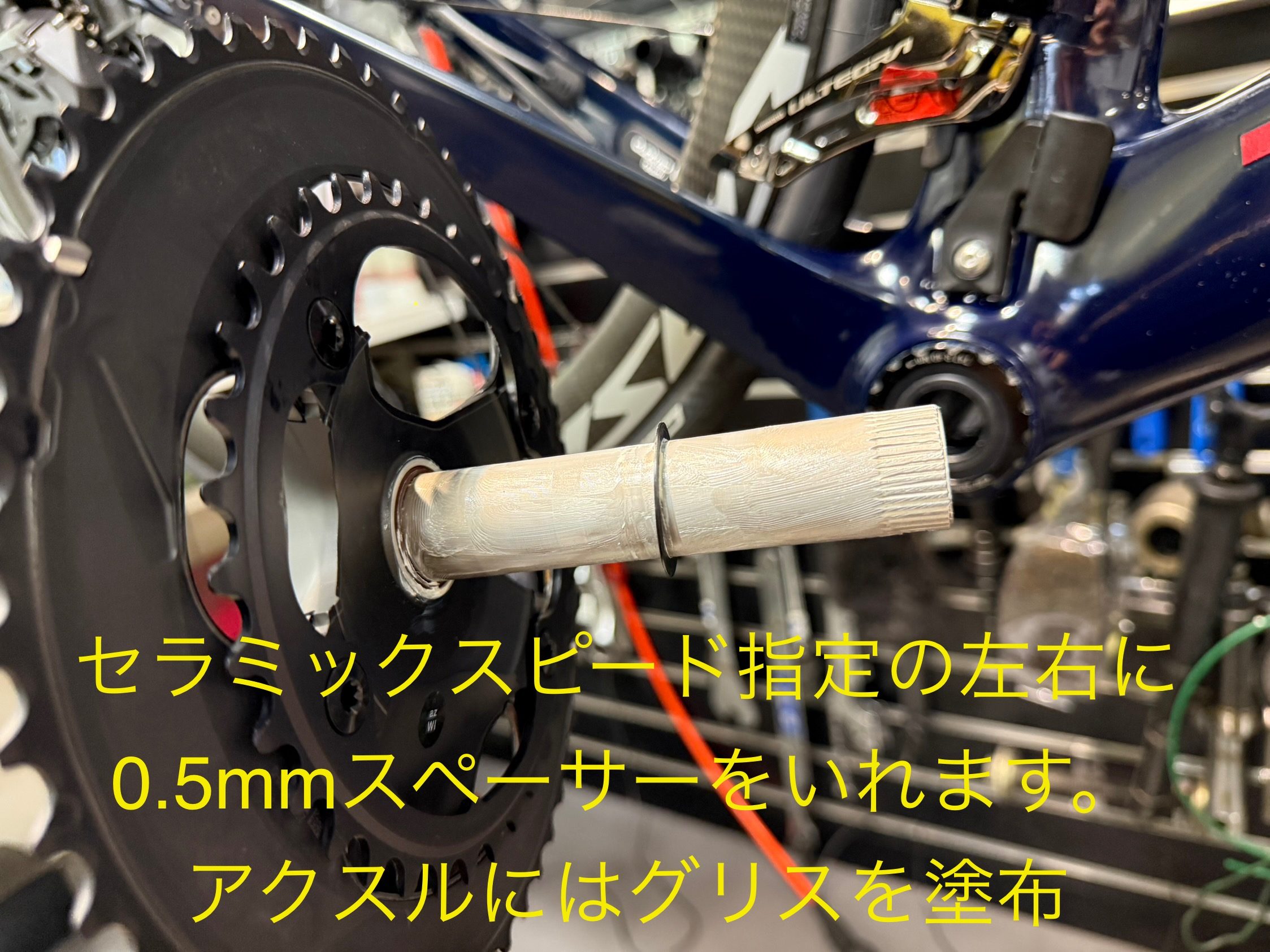 装着されていましたセラミックスピードのBBは、大変状態が良くシルキーな回転でした。