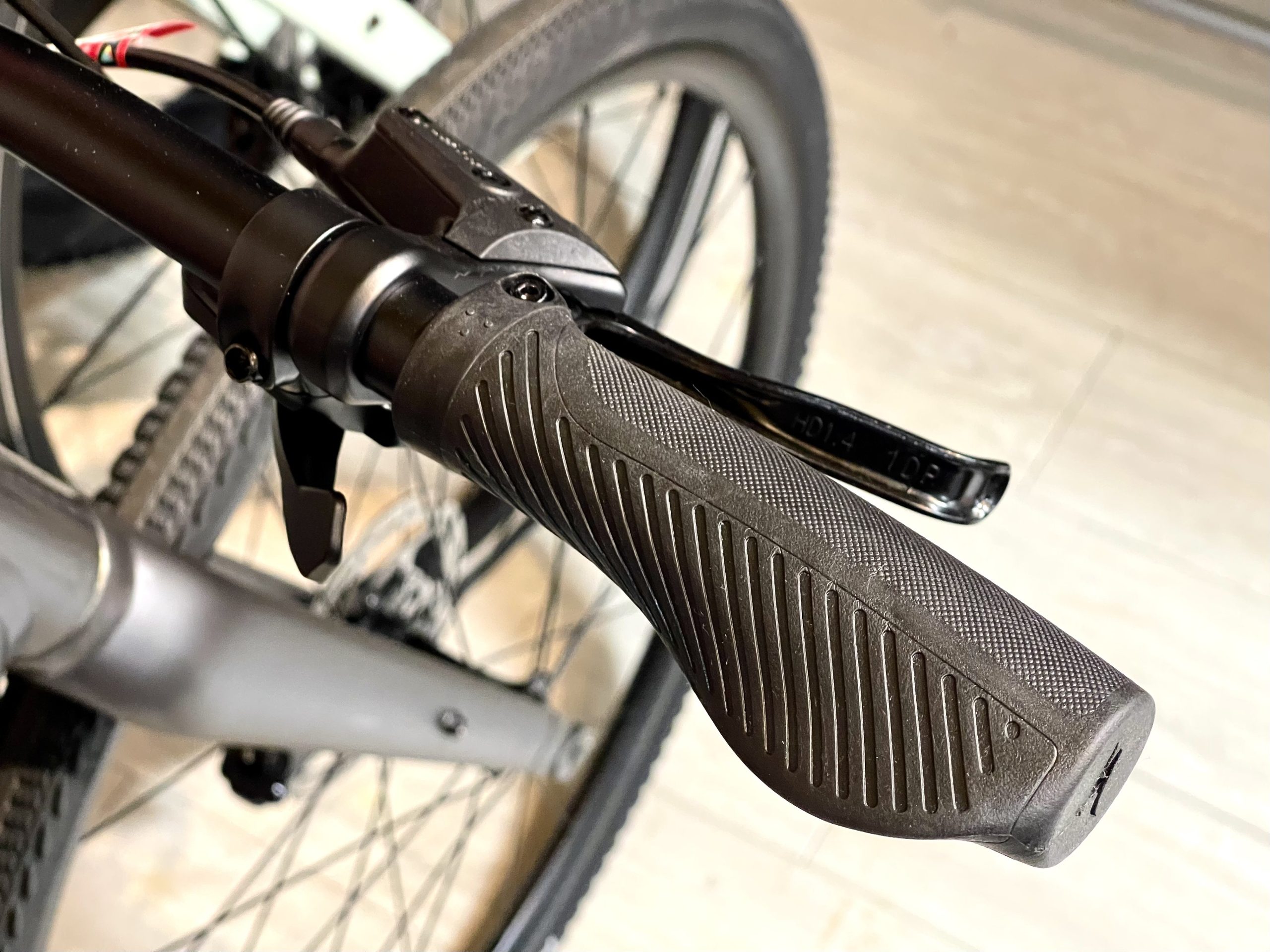 人間工学に基づいて成形されたグリップ。面で圧力を分散し長時間のライドでも手への負担はわずかです。